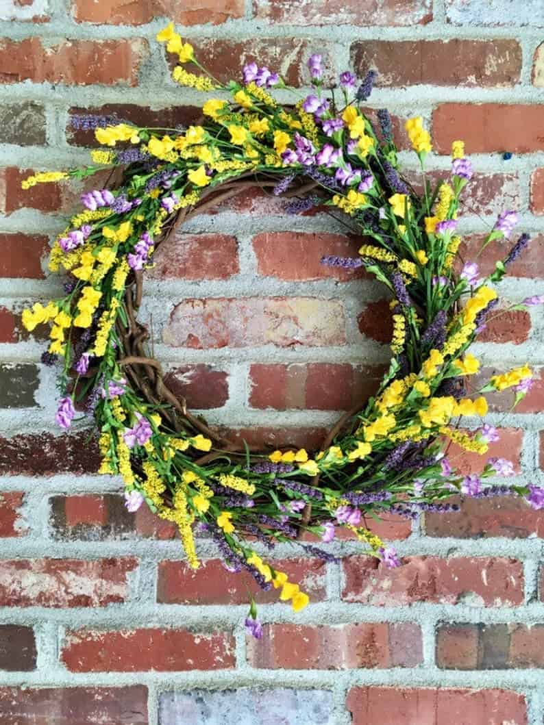 12. Lavender and yellow spray floral wreath