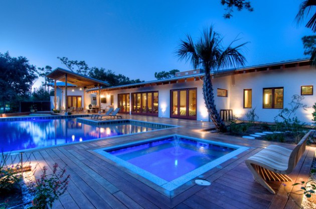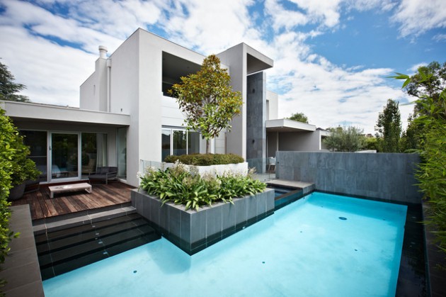 The following suggestions for arranging the exterior, include ideas for introverted and extroverted characters. The choice of furniture and decor is very important, but we should not forget the natural vegetation, which is equally important factor for creating the desired atmosphere in the yard. If you want to go a little further, you can opt for some contemporary swimming pool. It will contribute to the whole appearance, and will provide you wonderful and cozy stay. Below, we present you one collection of some spectacular contemporary exterior designs with swimming pool. All of them are attractive, you just need to find your favorite one. Browse our collection, and you will find many fascinating ideas!