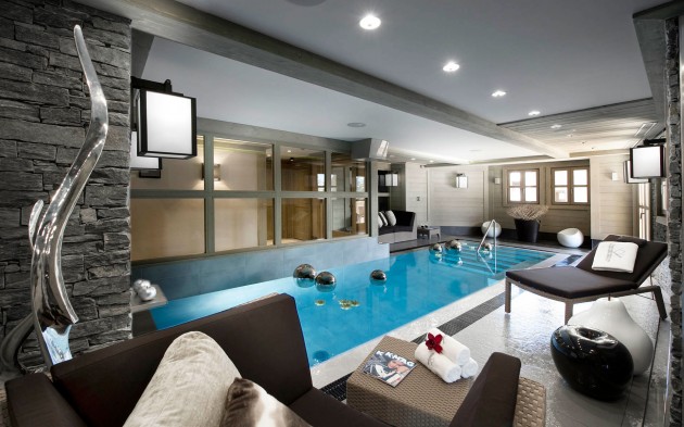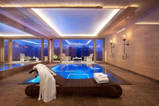 If you enjoy luxury and you want to reach extravagant look in your home, this is perfect idea. Make unique indoor pool in your home and allow your self to enjoy the benefits that are offered by indoor pool. Swimming pool in you home can enhance almost any room in your home, or they can be used to create an entirely new space for entertaining and leisure. Indoor swimming pools are perfect solution for all those who want more luxurious and extraordinary design. The whole equipment for building and maintaining indoor pool is quite expensive, so if you are willing to build it in your home you need to set aside a larger amount of your salary. Now take a look in our collection and find your favorite indoor pool design.