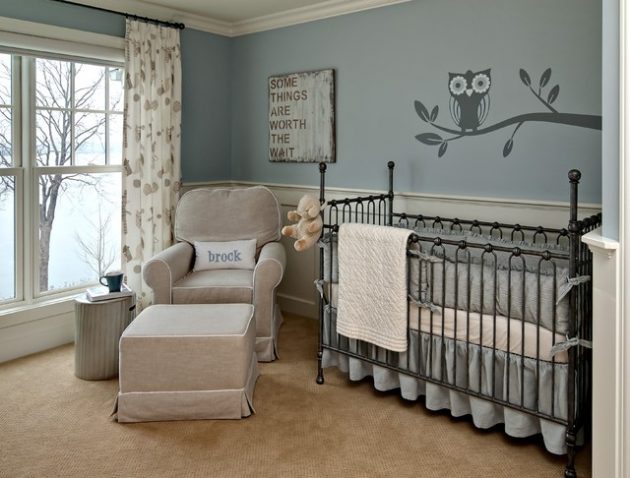 Do not forget that the room for first should be fun and colorful – stuffed animals are an indispensable part of every kid’s room, as well as paintings, inscriptions on the walls and, of course, a quality lighting! When choosing a bed, think about the functionality, safety and comfort. For the baby is not an important the design of the bed – it’ll be comfortable in the crib that came from a relative or friend. Only the mattress must be new and made of quality material, to allow good support of the body. These are the main items that you should pay special attention, and the rest depend on your wishes. In our following collection, you can see various examples of traditional nursery designs, that abound with elegance and pleasant feel. Check out below and enjoy!