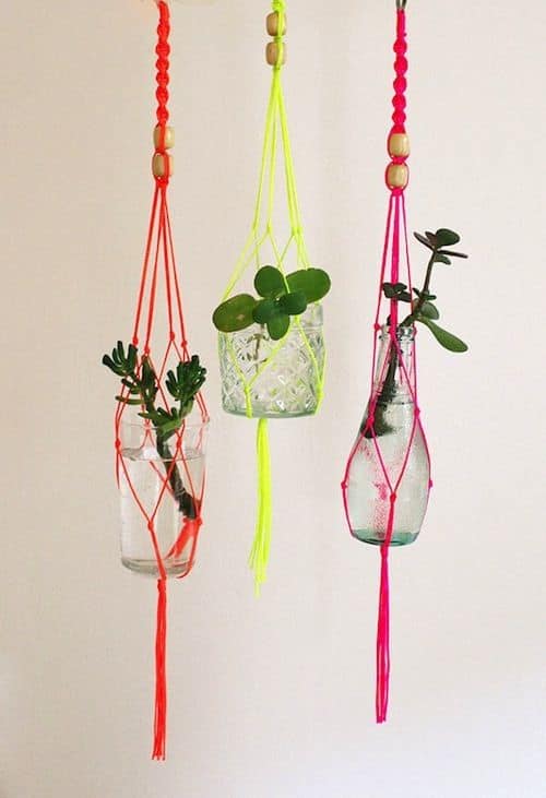 Macrame is back and is very popular these days. If you are into crafting and creative diy stuff then this is something new and interesting to be done. Macrame curtains are very easy to make and look awesome in any modern home. They give that vintage, country touch to the space. Macrame hangers are a great way to bring a space to life! These DIY hangers will make you feel proud of your craftsmanship. With simple easy to follow instructions, make it, hang in your space and fill the glass jar with either a plant, flowers or even a gold fish?! Also you can make macramé bracelets or necklace. We can help you with these lovely macramé diy ideas. Have fun…