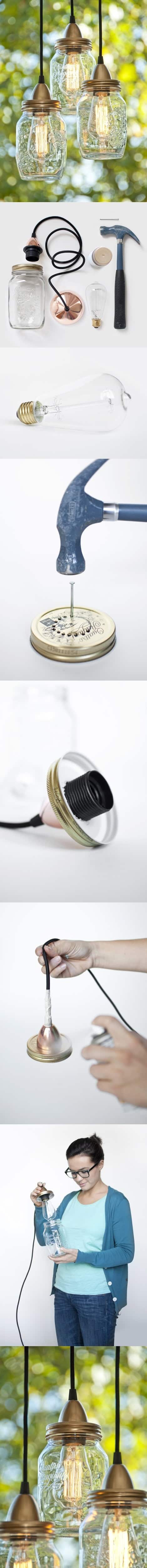 Repurpose mason jars into rustic DIY hanging lights.