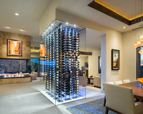 Some oenophiles appreciate their wine so much that they want to admire it from the living space. Large refrigerated cubes have been trending on main floors lately.