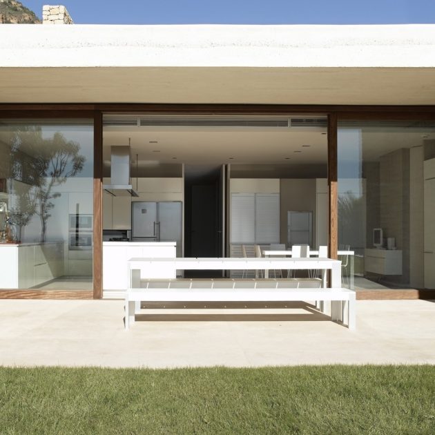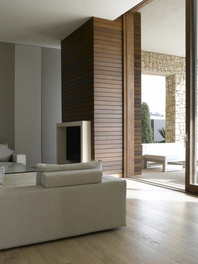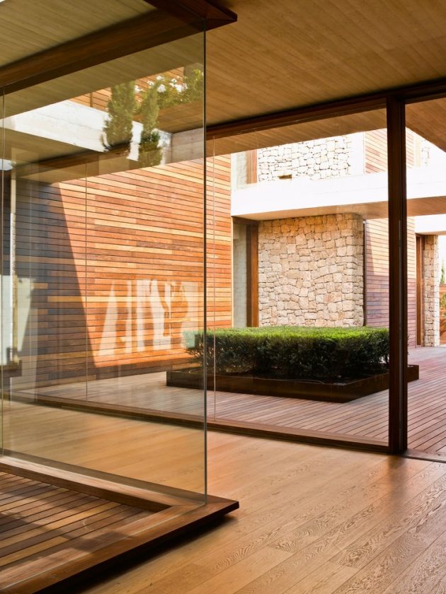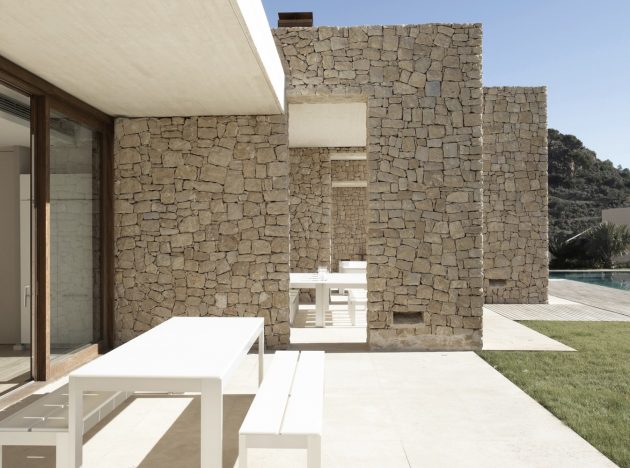 Inside, stone and wood combine to create a harmonious and serene environment. The patios ensure cross-ventilation, daylighting, and multiple spatial perceptions throughout the home. The fluid connection between day and night zones, along with seamless indoor-outdoor living, reflects Ramón Esteve’s philosophy of designing houses as both fortresses of privacy and open stages for Mediterranean life.
