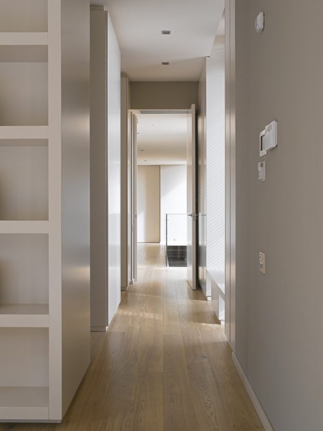 The house is structured as a series of interlinked volumes of varying heights, unified by long stone walls that define its abstract geometry. Central to the organization are three consecutive patios, which serve as spatial articulators. These patios embrace the entrance and divide the program into day and night zones, reviving the Roman tradition of organizing domestic life around atriums.
