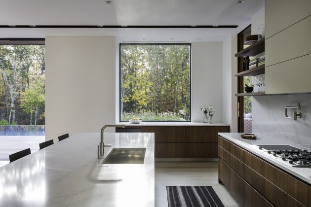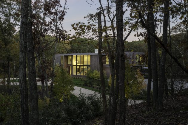 The Old Sag Harbor Road residence is a beautiful, contemporary house located in the dense wooded area of Southampton, New York. It was designed by Blaze Makoid Architecture, a studio that has already made a few appearances on our site, most notably with their Martis Camp 506 and Daniel’s Lane Residence projects.