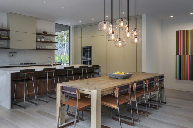 This 7,200 square foot home was designed for an energetic couple who envisioned the project as a secret hideout among the trees. One of the owners is an interior designer with an architecture degree; he served as a key collaborator and tackled design challenges as part of the team.