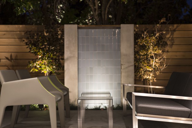 When open, the glass walls dissolve the boundaries between the living-dining room and the landscaped side yards, transforming the interior into an open-air pavilion. The central living area flows directly into a water-feature courtyard, firepit lounge, and outdoor dining terrace, enhancing both spatial depth and versatility.