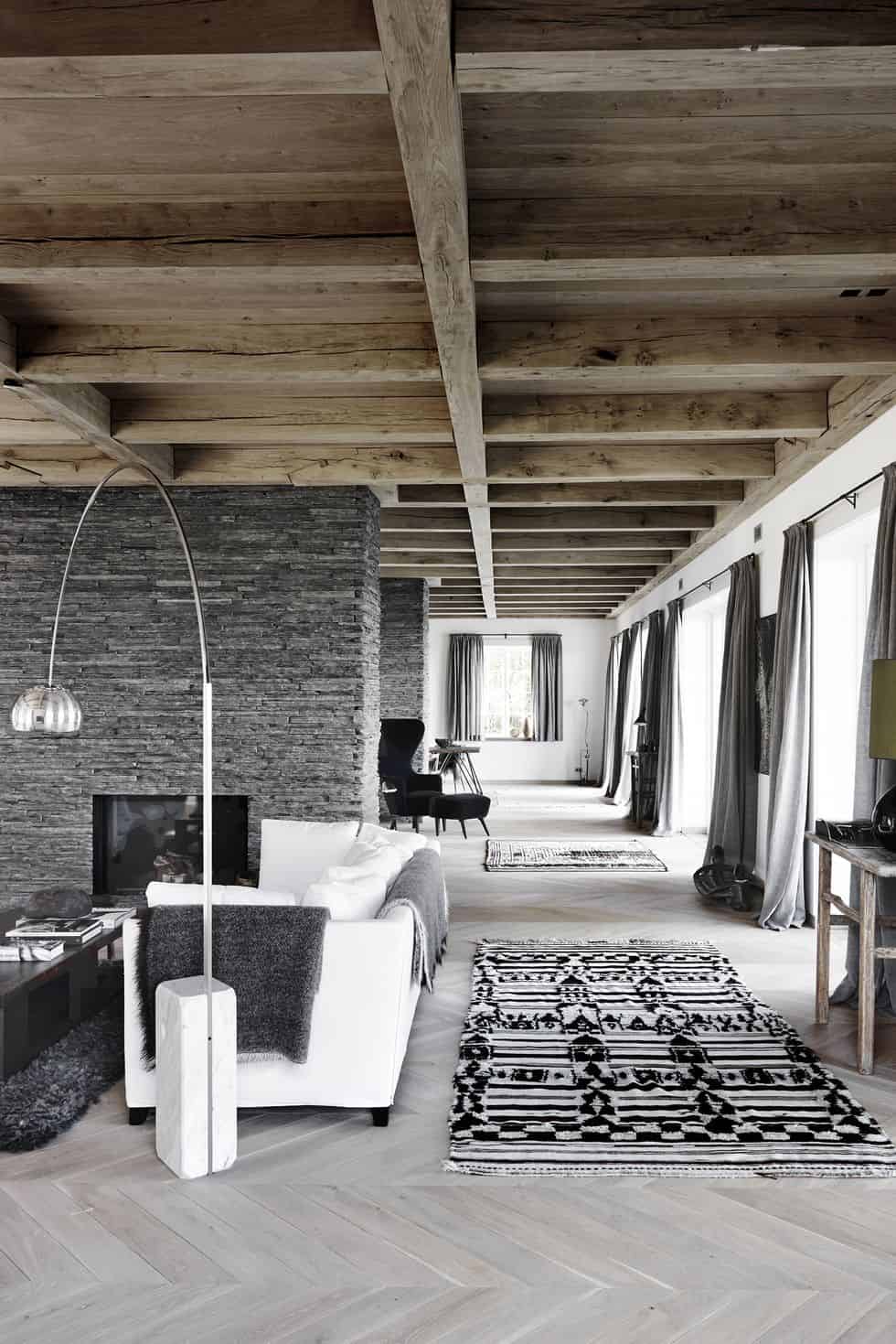 The first thing that we could spot is this impeccable Scandinavian design, that we all love! This is a Danish weekend retreat, that bursts with gray, black-and-white notes. The rustic sense has been given with the wooden ceiling that makes such a warm impression.
