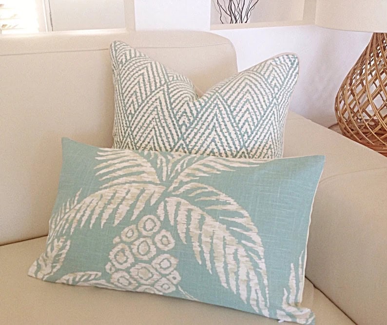 For a more luxurious feel, consider pillows made from soft, plush materials like velvet or chenille in coastal colors. These materials add a touch of elegance to your space while still maintaining the relaxed, beachy vibe you’re aiming for. The combination of natural and plush fabrics can create a balanced look that is both stylish and comfortable.