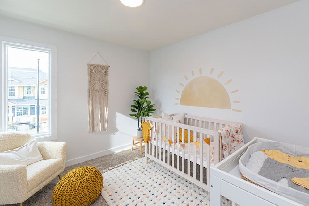 Embrace a modern Mediterranean fusion by keeping furniture sleek and uncluttered. Opt for a low-profile changing table and a crib with clean lines, creating a minimalist haven. Introduce texture with elements like woven pendant lamps that cast a dappled light, baskets for storage woven from local reeds, or a handwoven rug in a muted terracotta hue. These pieces add a touch of Mediterranean flair while maintaining a modern aesthetic.