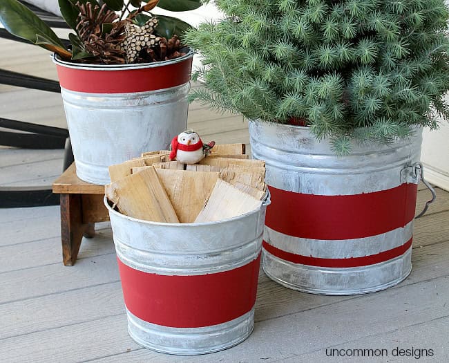 Another fun idea is to create “mini Christmas trees” by placing a cone-shaped piece of styrofoam or chicken wire inside the planter and wrapping it with greenery or tinsel. This affordable DIY project is an easy way to make your outdoor decor feel more festive and full.