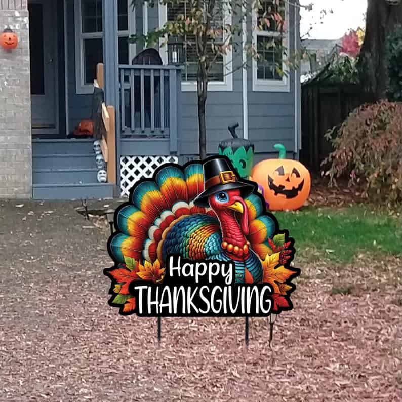 Enhance your entrance further with a Thanksgiving yard sign. Look for options that convey messages of gratitude, such as “Give Thanks” or “Happy Thanksgiving.” Placing a colorful sign near your front door or in your garden will draw attention and bring cheer to your home.
