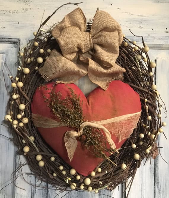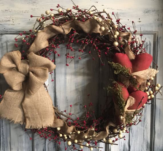9. Primitive country valentines wreath