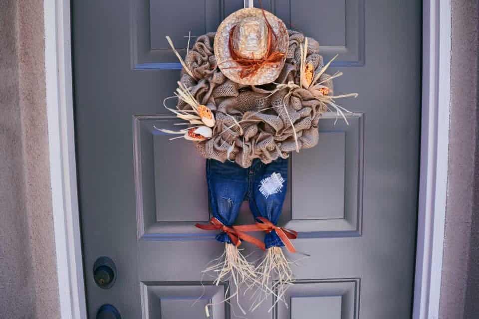 7. Scarecrow Burlap Wreath for Thanksgiving