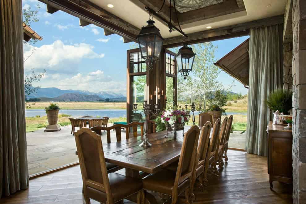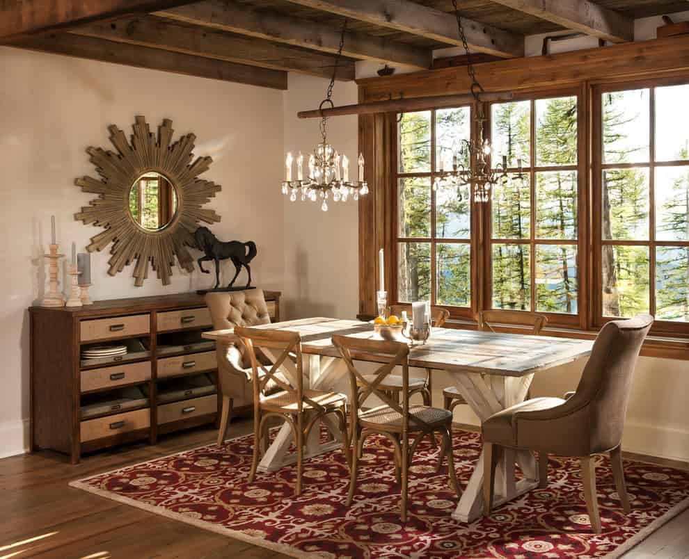 If you haven’t done so already, you can check out our previous rustic design collections such as 15 Snug Rustic Home Exterior Designs For The Cold Winter Days, 15 Warm Rustic Kitchen Designs That Will Make You Enjoy Cooking!, 20 Cozy Rustic Living Room Designs To Ensure Your Comfort and 15 Restful Rustic Bedroom Interior Designs That Will Make You Sleep Nice. And now we are left with rustic dining room interior design with which we will show you that you can have a warm and cozy meal while having a nice view of the cold winter landscape outside.