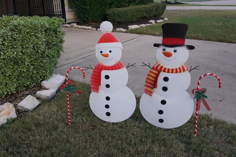 10. Snowman Stakes Outdoor Christmas Decoration
