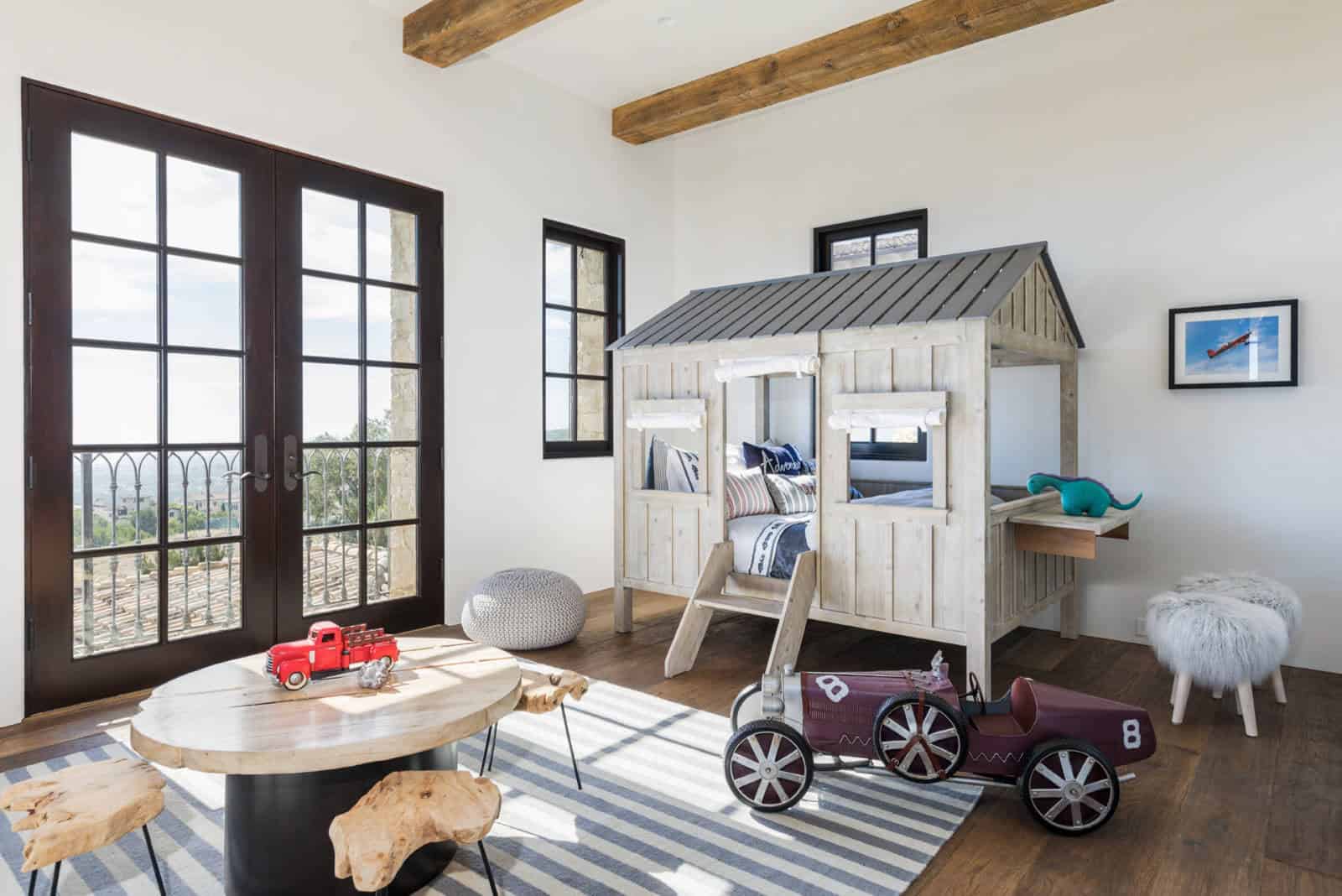 Set sail for adventure with these nautical-themed Mediterranean kids’ room ideas! Imagine a space brimming with the spirit of exploration, where earthy tones like terracotta, ochre, and olive green meet pops of navy blue and sandy beige. Natural textures take center stage with woven rugs and wicker furniture whispering comfort underfoot. Hand-painted murals depicting playful dolphins, majestic ships, or captivating lighthouses adorn the walls, sparking a sense of wonder.