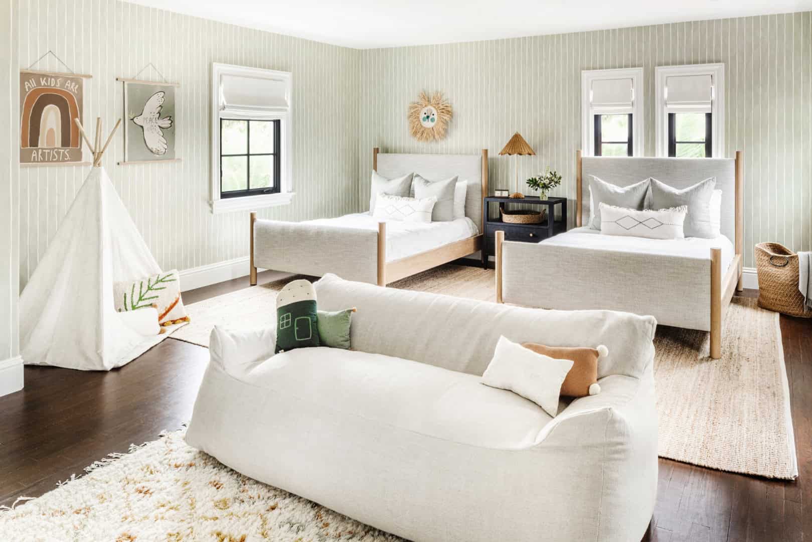 Ample storage solutions, crafted from wood or woven baskets, keep toys and treasures neatly organized. Don’t forget the cozy beanbag chairs or floor cushions perfect for reading about faraway lands. The Mediterranean influence extends beyond the bedroom, gracing nurseries and playrooms with its warm embrace. Design your dream kid’s haven and ignite their imagination with the magic of the sea!