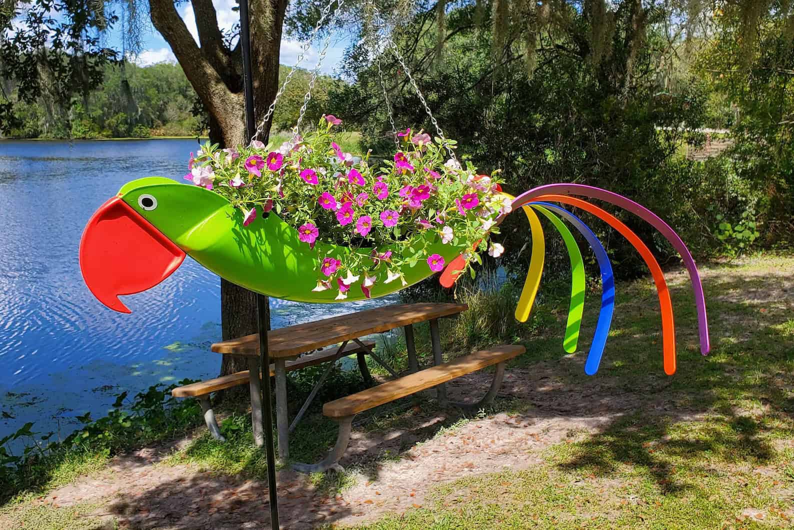 1. Natural colored Green Parrot Hanging Outdoor Planter