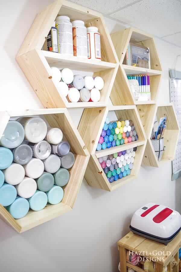 10. DIY HEXAGON SHELVES FOR CRAFT STORAGE
