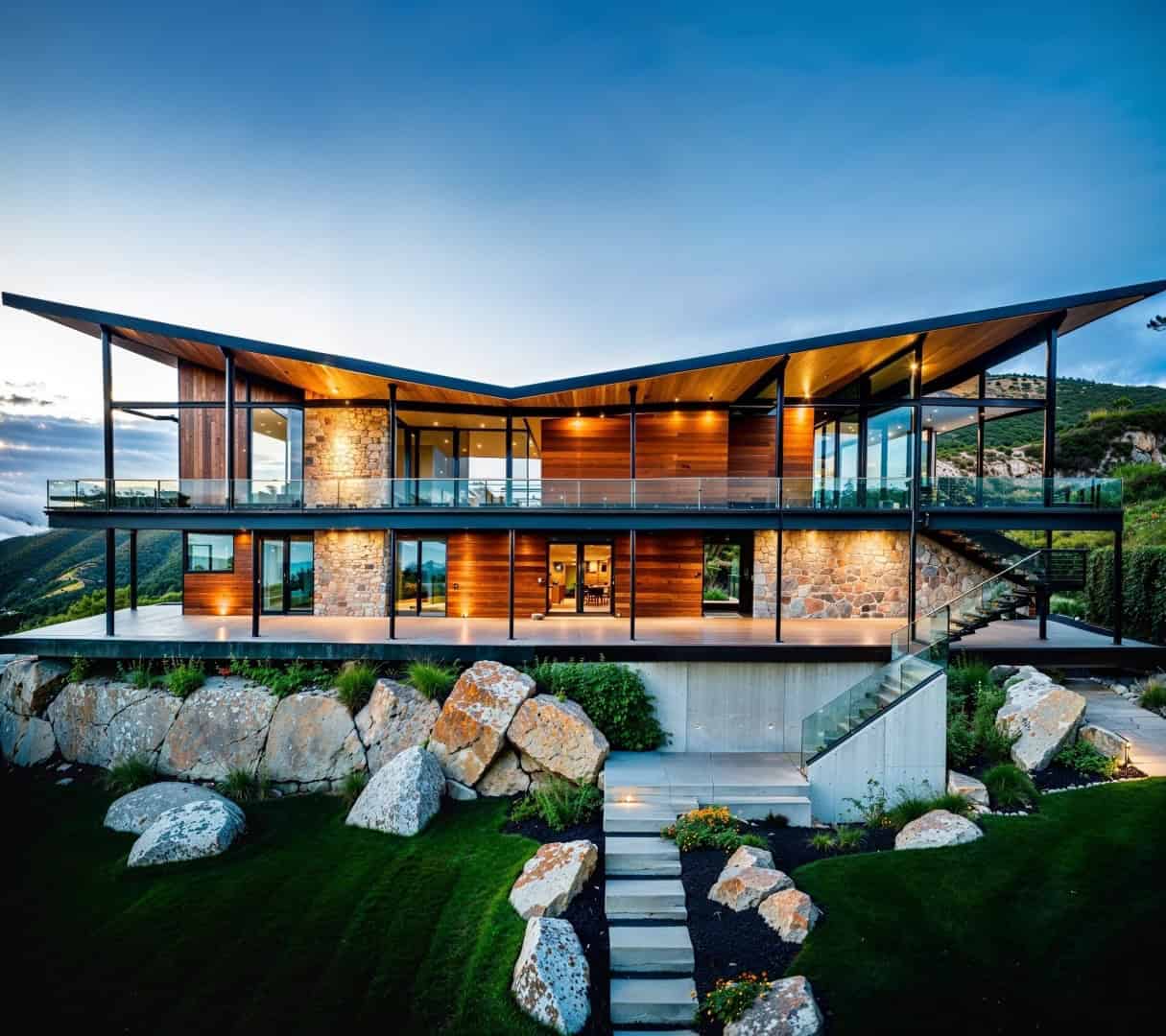 Rustic exteriors blend natural elements with cool design. Think big, rough-cut wooden beams supporting the porch roof. Stone paths wind through vibrant gardens overflowing with colorful wildflowers. Maybe even a rustic deck extends the living space outwards, creating a perfect spot for enjoying summer evenings under the stars.