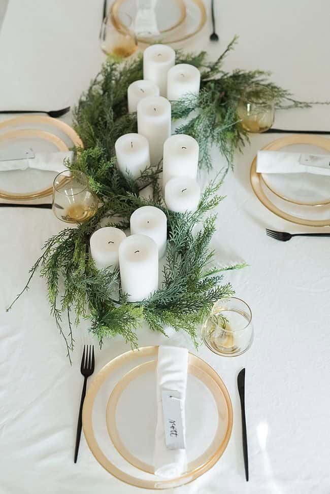 7. Candle and Greenery Centerpiece