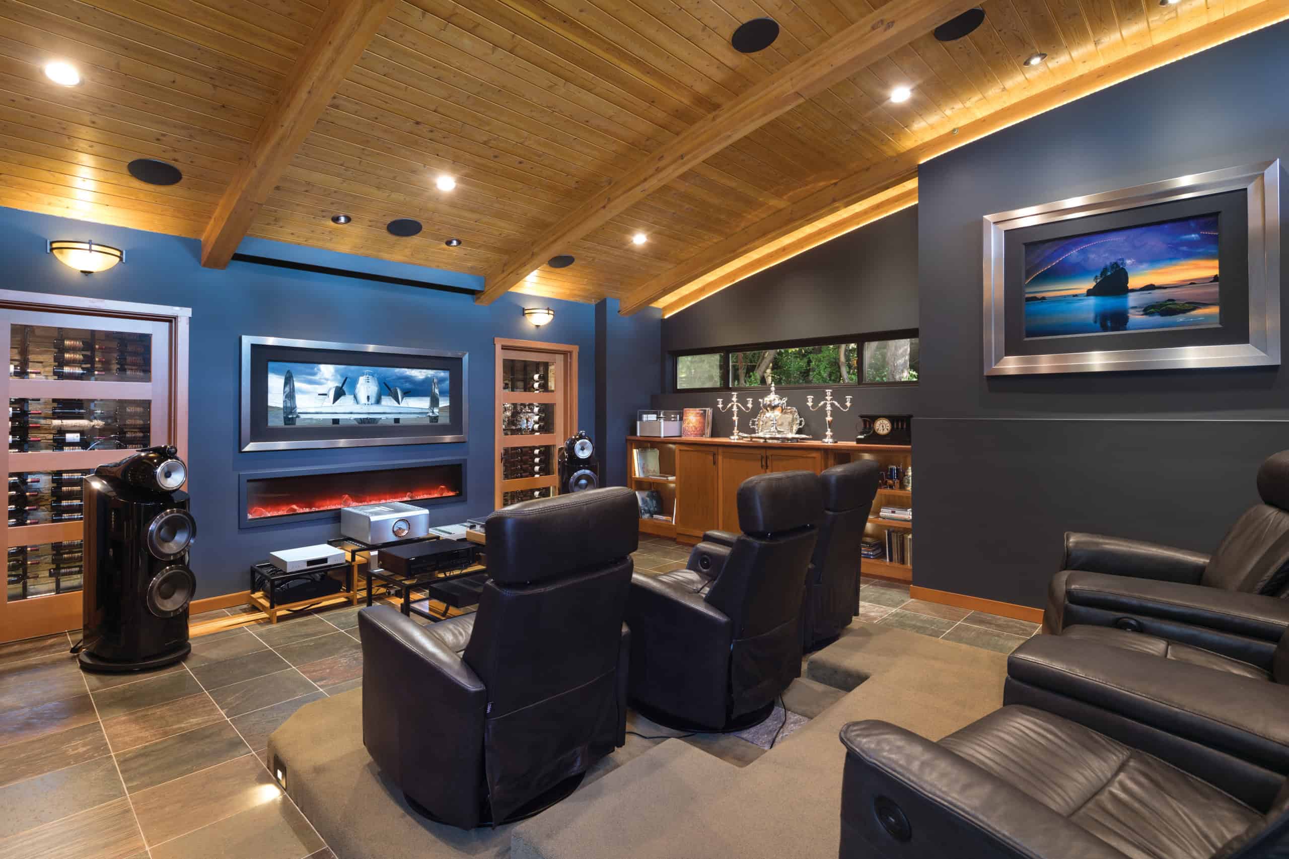 The foundation of a stylish midcentury home theater begins with a well-thought-out color scheme. Opt for rich, deep tones such as teal, burgundy, or mustard yellow, which were popular during the midcentury era. These colors evoke a sense of warmth and nostalgia, making them ideal for a cozy theater environment. You can use these hues on the walls or as accent colors through furniture, drapery, and accessories.