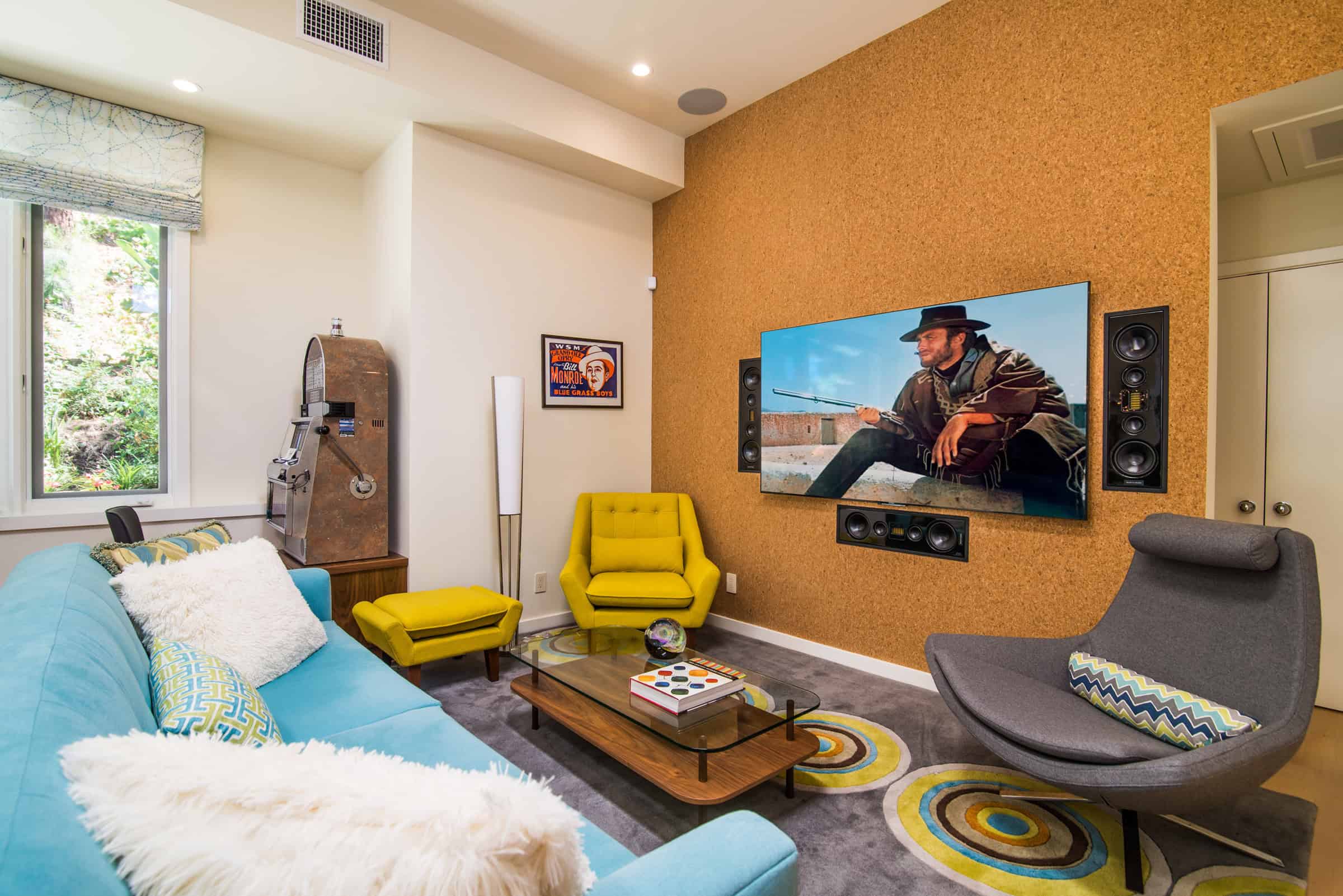 Invest in high-quality audio equipment that complements the vintage aesthetic. Speakers can be integrated into custom cabinetry or placed strategically around the room for a surround-sound experience. Choose speakers that not only deliver exceptional sound but also align with the midcentury style, such as those with wooden finishes or unique designs.