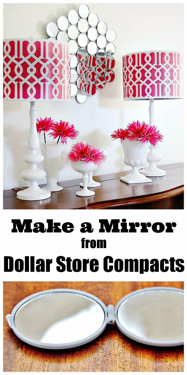 8. MAKE A WALL MIRROR FROM DOLLAR STORE COMPACTS