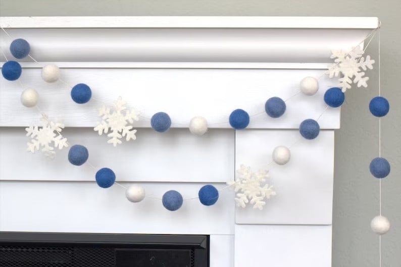 1. Snowflake & Felt Ball Garland
