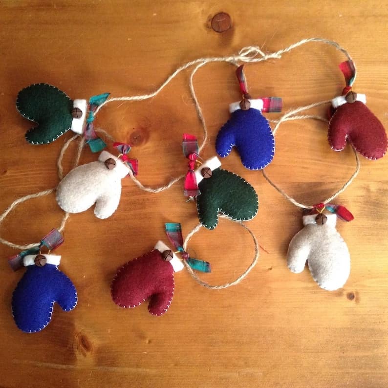 14. Christmas tree mitten garland