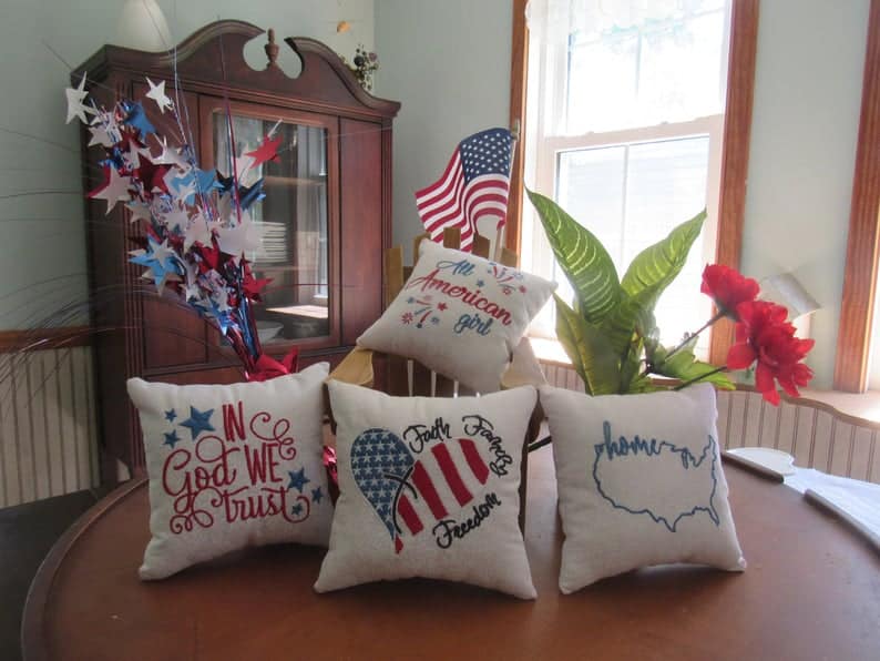 6. embroidered patriotic mini pillows