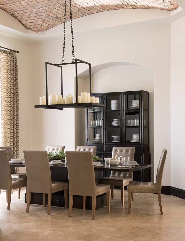 Whether or not you are a fan of the Mediterranean style, you should check out the photos below where you will be able to see its characteristics applied to the dining room. If you think you like it, make sure to check out the rest of our collections from this showcase featuring designs of the Mediterranean kitchenbathroombedroom and living room. Enjoy!