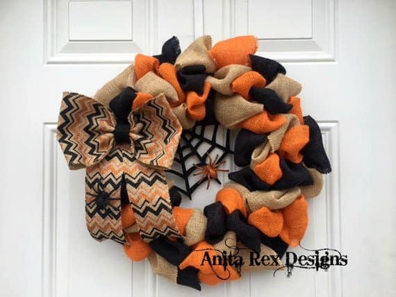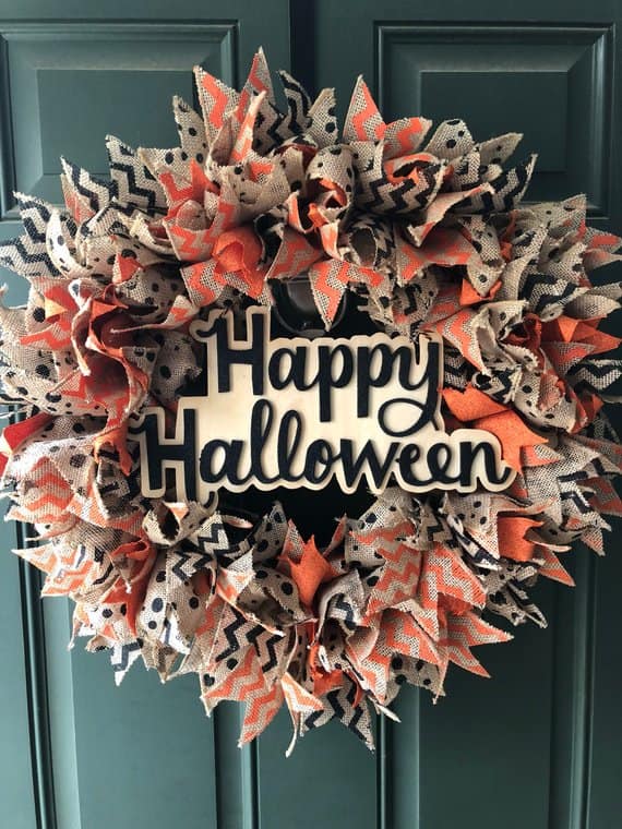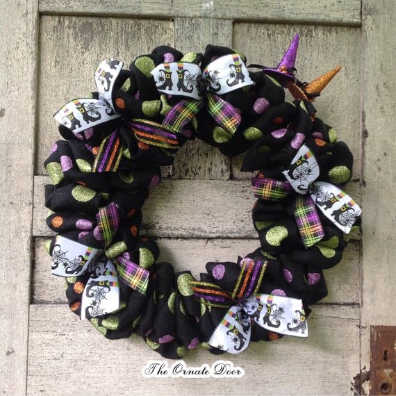 17. Black and Orange Polka Dot, Chevron, Burlap Halloween Wreath
