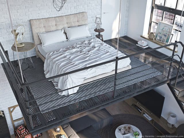 Well no, that’s a wrong way to think about this design style. There are so many ways to use the industrial style that you can literally let your imagination take command and use anything you feel like would fit the room. It can be surrounded by concrete, wood, steel or just a small fence if your bedroom is above another room.