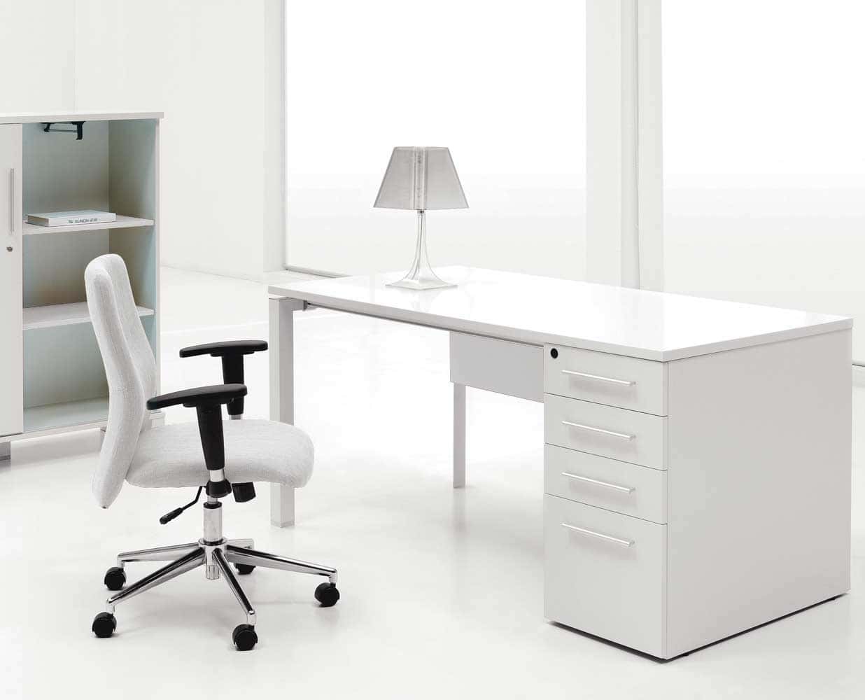 It’s important to arrange the desk and to decorate it in your own style. We recommend you to choose furniture in bright and neutral tones and always keep your workspace neat and tidy. When buying furniture, independent of manufacturer, always take care of the possibilities for customization. Below, we present you one collection of elegant white desks to make sophisticated home office!