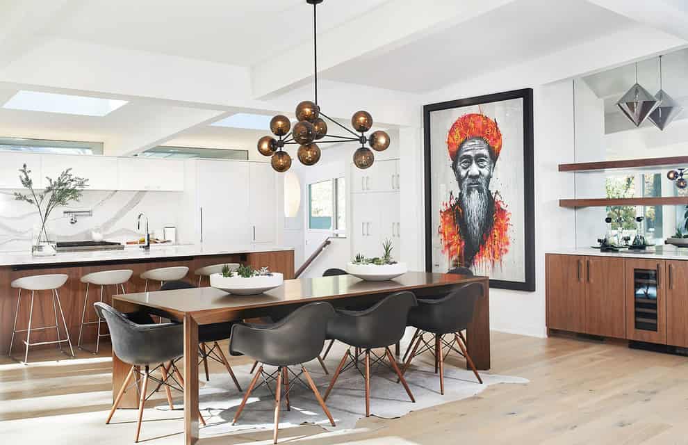 The mid-century modern dining room is the perfect example of a dining room where the room isn’t just the table. This style takes the table and everything around it and gives it a sleek look that instantly throws you back to the ’50s. This style is unique in many ways but more importantly, it is the predecessor to many of the modern styles that are very popular right now. That doesn’t stop it from gaining popularity though and as you’ll see, it’s got something of its own.