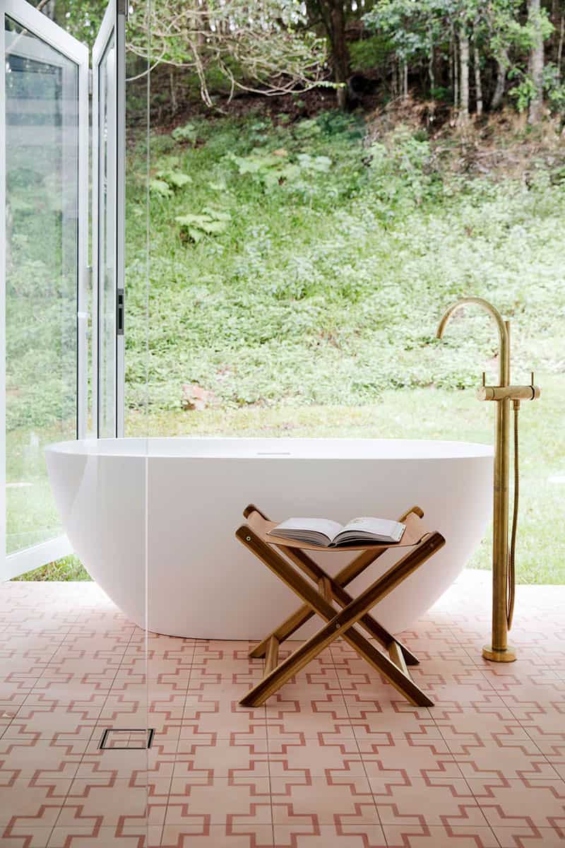 Who doesn’t dream of taking a bath with a view of nature? In the design of contemporary homes, it has become a must-have. Here, we fall for the gold freestanding faucet: it’s the little detail that makes all the difference.