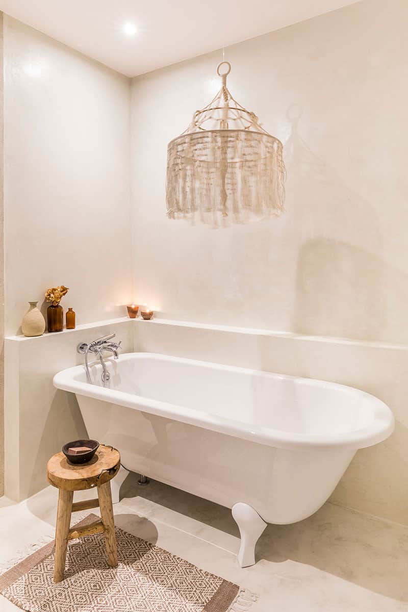 Decorating enthusiasts are not immune to the charm of a lion’s foot bathtub. Its little retro side sublimates all styles of decoration, as in this bathroom, with a style that is both ethnic and minimalist.