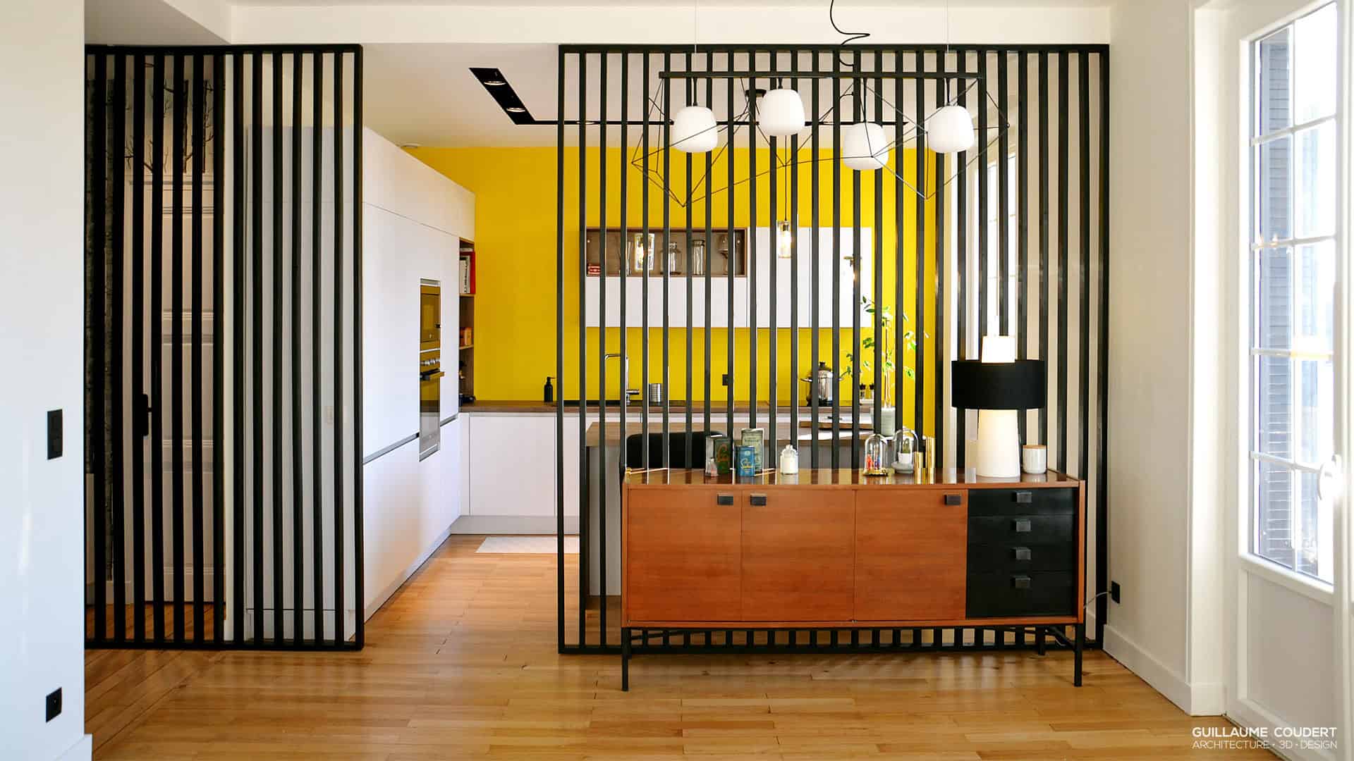 The screenings are very decorative but it is not their only interest. As with the rest of the house, the use of trellises allows partitioning of open space. This makes all the more sense that a few years ago, “the big fashion” was to create a kitchen open to another room, often the living room or the dining room. Time passes, trends and desires change. And rather than installing solid partitions that require a lot of work, the shutters are a nice alternative. Little work, a decorative result, a wide choice of patterns and materials. And we still keep the idea of ​​openness. The partitioning is not the same as with a plasterboard wall. The light continues to circulate. We do not completely break the feeling of space.