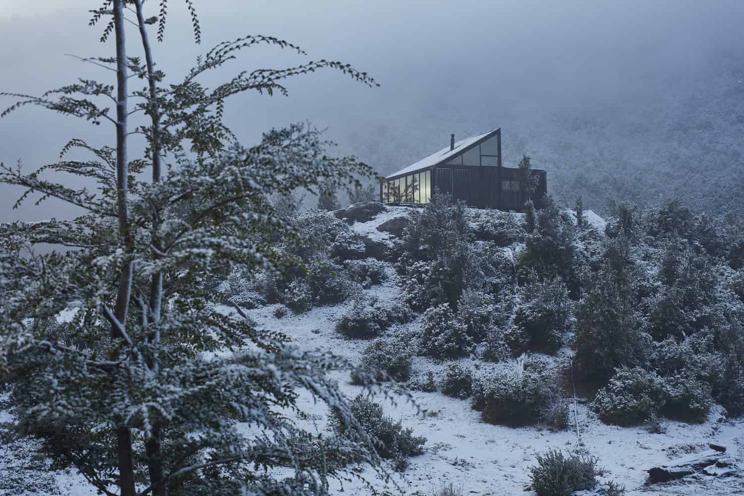 The GZ1 house has 65 square meters and is located over the Lonconaos Lake Peninsula, about fifteen kilometers from the town of Futaleufu, in the “Region de Los Lagos” (Region of Lakes), in the Chilean Patagonia. Given the weather conditions in this area, in addition to the height where the house is placed, it frames the main view of the lake and everything else is left behind.