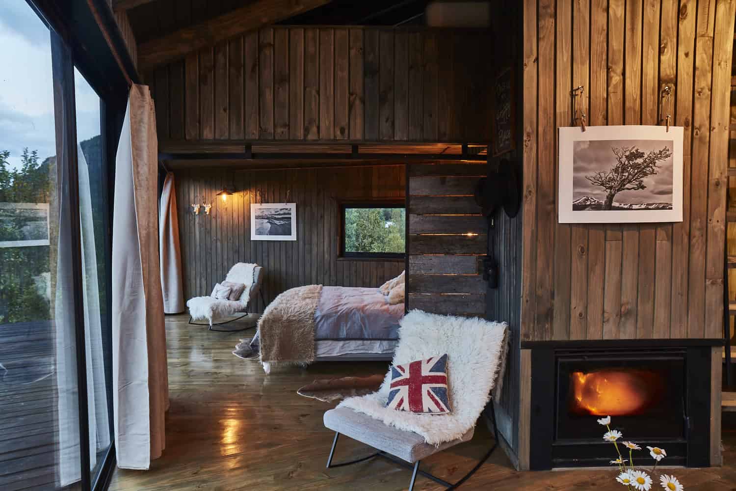 The sloping roofs rise to create a loft, which is accessed through a retractable staircase that frees space in the small dwelling, without disturbing it. Finally, the fireplace of the house is in the middle of the building in order to maintain heat and has a shaft that distributes heat naturally to the bathroom and bedroom.