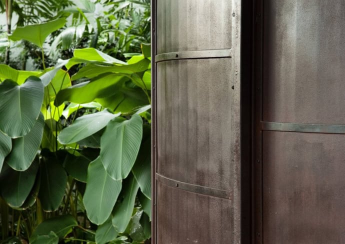 Outdoor sink feature surrounded by greenery at Ninety7 Residence.