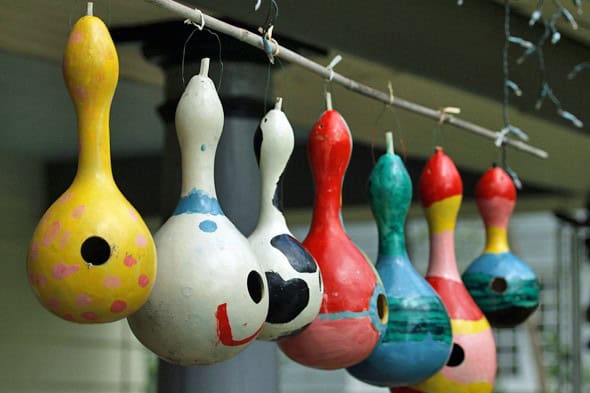 1.Make birdhouses from pumpkins and paint them in different colors.