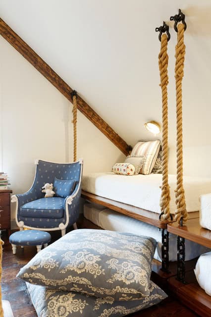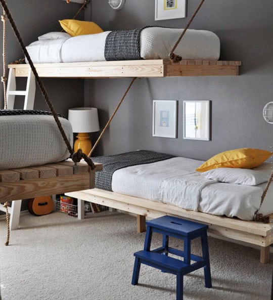 When it comes to the bed, the comfor and the quality should be on the first place. If you don’t have enough space for two beds in one room, you should consider some clever solution for creative use of the space. In the following ollection, we present you some extraordinary hanging bunk bed designs, which are ideal for small spaces. Beside that, they are good-looking and practical. Browse our collection, and you might find solution for your small child’s room!