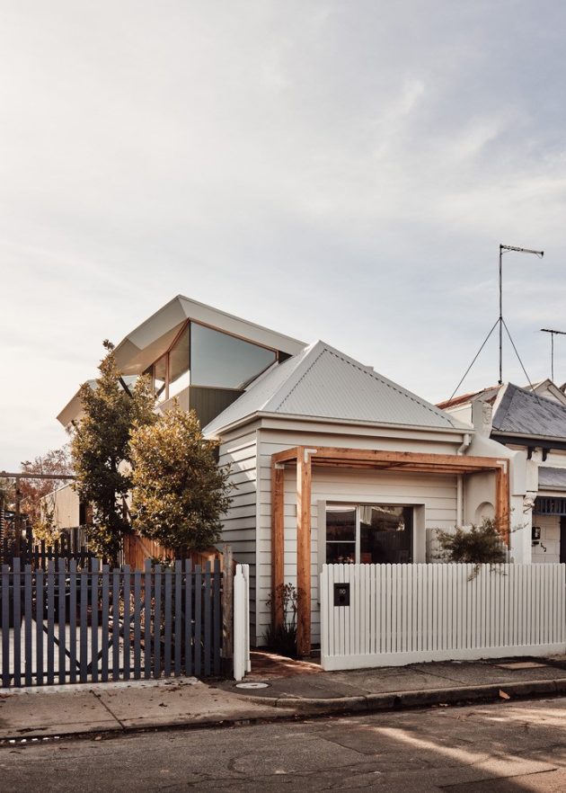 Timmins + Whyte Architects have designed the renovation of a single-story Edwardian cottage located in Abbotsford, a suburb of Melbourne, Australia. The rebuilt dwelling takes on a contemporary look with a focus on natural lighting.