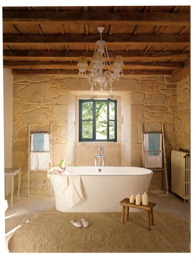 If, in addition to being located in an old stable, the bathtub is lined with a wooden skirt, in addition to a relaxing bath, you will feel all the warmth and comfort. Like in this rustic bathroom.