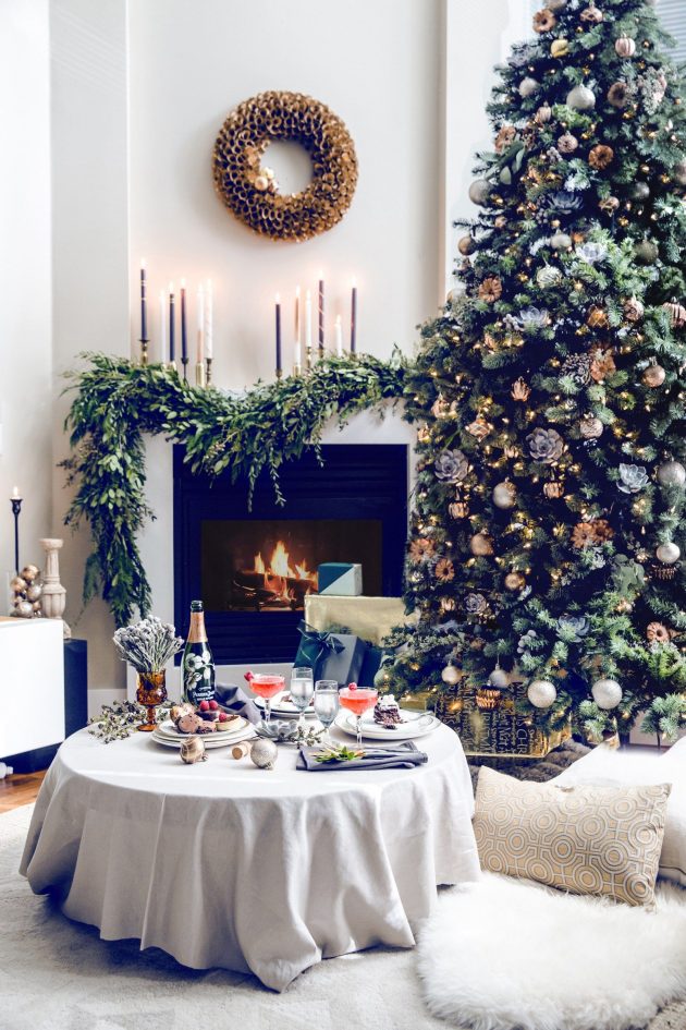 Try to work with the traditional colors that refer to the date, such as red, green, and gold. But for those who want to dare and do something different, they can innovate with a combination of colors such as silver and purple, blue and gold, brown and red, etc. Those who choose cleaner decor, try to highlight the white combined with any of these tones mentioned above.
