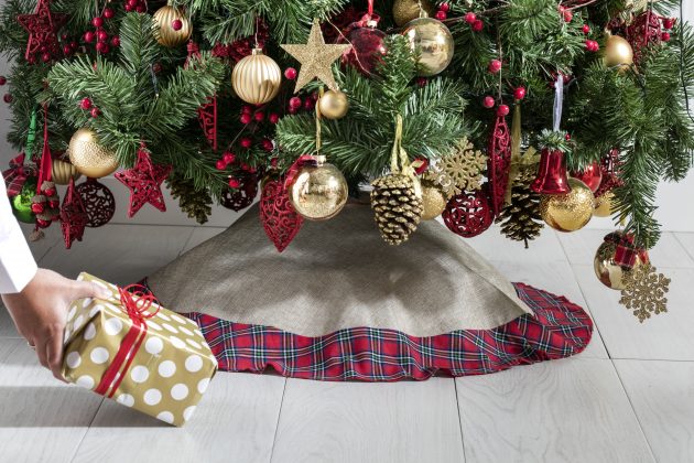 The first thing you should keep in mind is that the tree does not lack light. Start by putting a garland of lights to make your tree shine. Go placing it from top to bottom. In two colors You don’t need more to be beautiful. With only two colors you achieve a very elegant effect. Bet on tradition. The balls and the tip star are a classic. Choose them correctly. Do not forget the base. Boxes wrapped with wrapping paper and ribbons will help you hide the support of the tree.